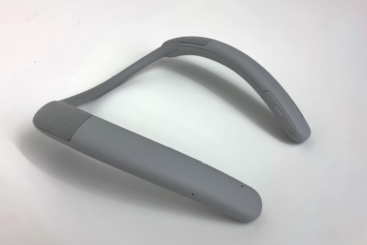 ソニーでは、映画やゲームの音声を迫力の重低音と振動で楽しめるネックバンドスピーカー「SRS-WS1」をラインナップしていますが、WS1が臨場感のある音を楽しむ用途であるのに対し、NB10はよりカジュアルにテレビ番組の音声を聴いたり、通話やオンライン会議などで音声コミュニケーションしたりといった用途を主眼に置いており、住み分けがされています。