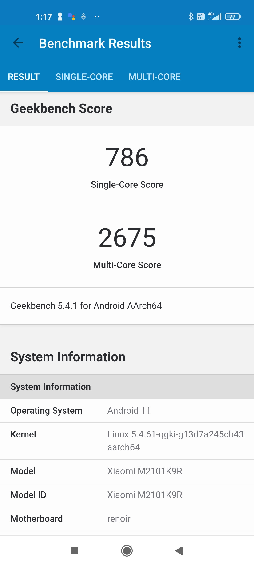 その性能を確かめるために、「Geekbench 5」アプリでベンチマークテストを実施したところ、ミッドレンジではトップクラスのスコアを記録。公式発表の高い性能は伊達ではないようです。