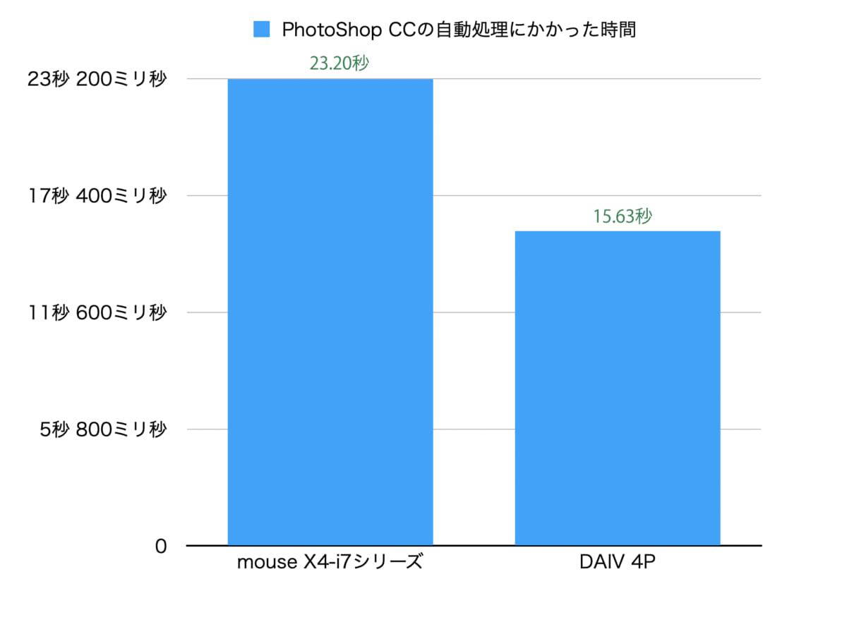 結果からお伝えすると、mouse X4-i7が23.20秒だったのに対し、DAIV 4Pが15.63秒でした。