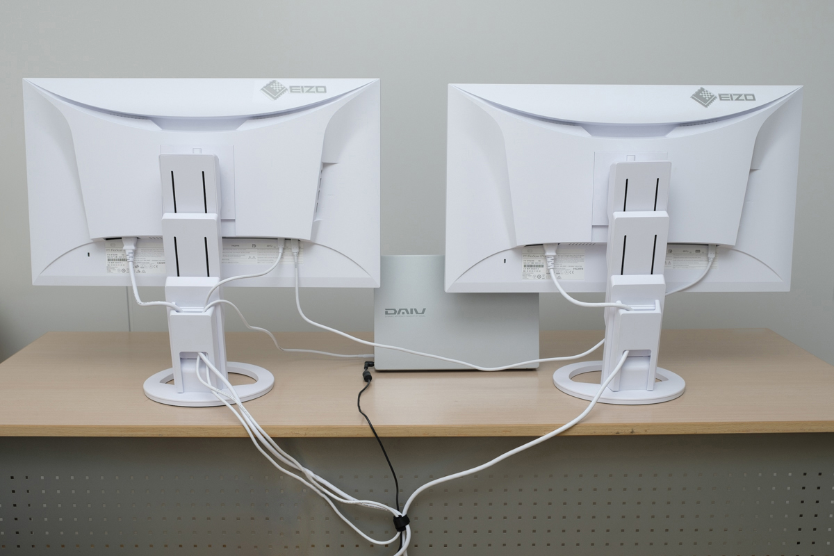 こうしたマルチタスクをこなせるのであれば、ぜひともマルチディスプレイ環境などを構築したくなります。その点、DAIV 4Pは、先にも紹介した通り、Thunderbolt 4規格準拠のUSB Type-Cを搭載。単に外部ディスプレイ1台と接続できるだけでなく、DAIV 4Pから外部ディスプレイに、その外部ディスプレイからさらにもう1台の外部ディスプレイにと、数珠つなぎのように複数台つなげる「デイジーチェーン」に対応しています。このため、外部ディスプレイと接続するケーブル配線を最小限に抑えながら、マルチディスプレイを実現できます。