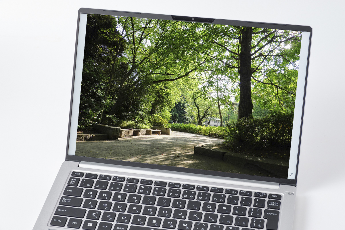 さらに、上下左右のベゼルを狭くしたことで、ディスプレイ部の画面占有率が92%を誇る「ナローベゼルデザイン」を採用。このようなデザインは、ここ数年のノートPCにおいては主流になりつつあります。しかし92%という画面占有率は、その中でも高い方で、ディスプレイが点灯している状態なら、ベゼルの存在はほとんど気になりません。高解像度で写真や動画を編集する際や、映像を夢中で楽しみたいときに、特にその恩恵を受けられるでしょう。