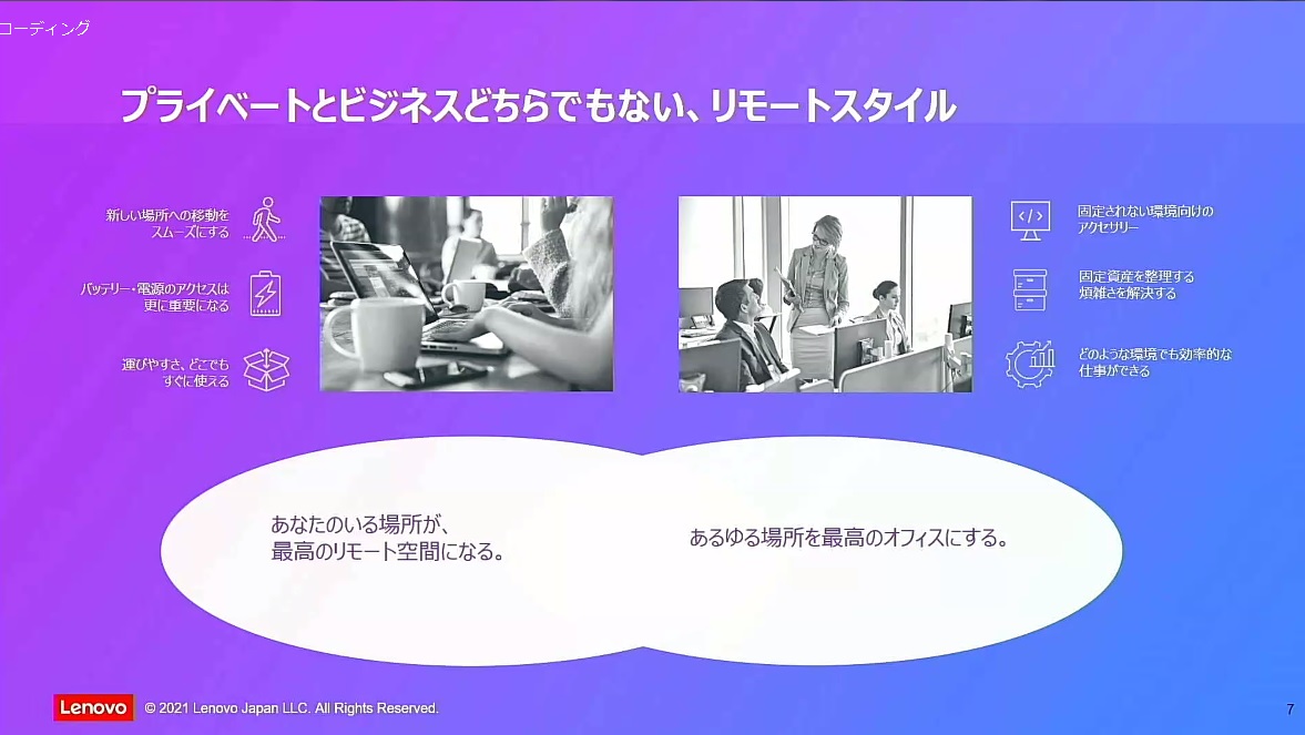 同社が新ブランドを立ちあげた背景には、新型コロナウイルスの感染拡大により広まったテレワークが感染収束後も部分的に継続され、オフィスに出社する従来型の働き方と混在する“ハイブリッド”型のワークスタイルが定着する、との予測があります。
