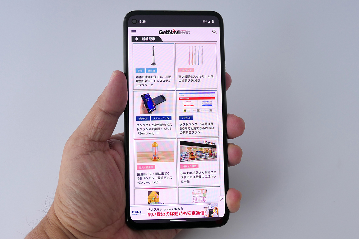 Pixel 5よりもひと回り大きいうえに、重量は183gと若干重くなっていますが、片手で操作しづらいということはありません。個人的には、画面が大きくなった分、Webページの文字や映画の字幕が見やすくなったように思えました。