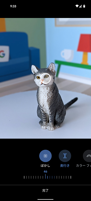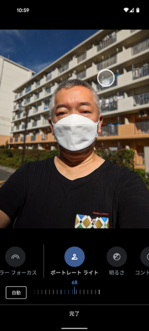 また、「ポートレート」モードで撮影すると、背景をナチュラルにぼかすことができます。さらに、撮影後に「フォト」アプリで、ボケの度合いを変更できたり、ライティング効果を変えたりできるのも便利です。このあたりの画像処理はソフトウェア技術を培ってきたグーグルならではの特徴と言えます。