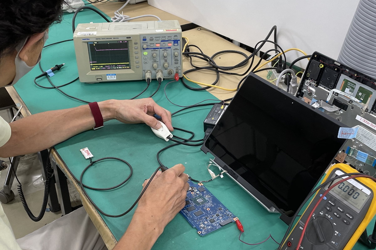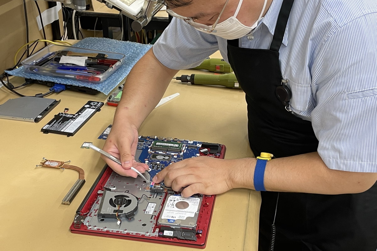 オンラインツアーでは、修理製品の到着時の検品から情報登録、マザーボードの交換やフラッシュロムの検査などの工程を見ることができました。従来、各工程の担当者が紙に記入していた工程管理もデジタル化によって効率化されるなど、とにかくすばやく修理するための工夫が各工程で実施されており、1日修理完了率95%というのも納得の内容となっていました。