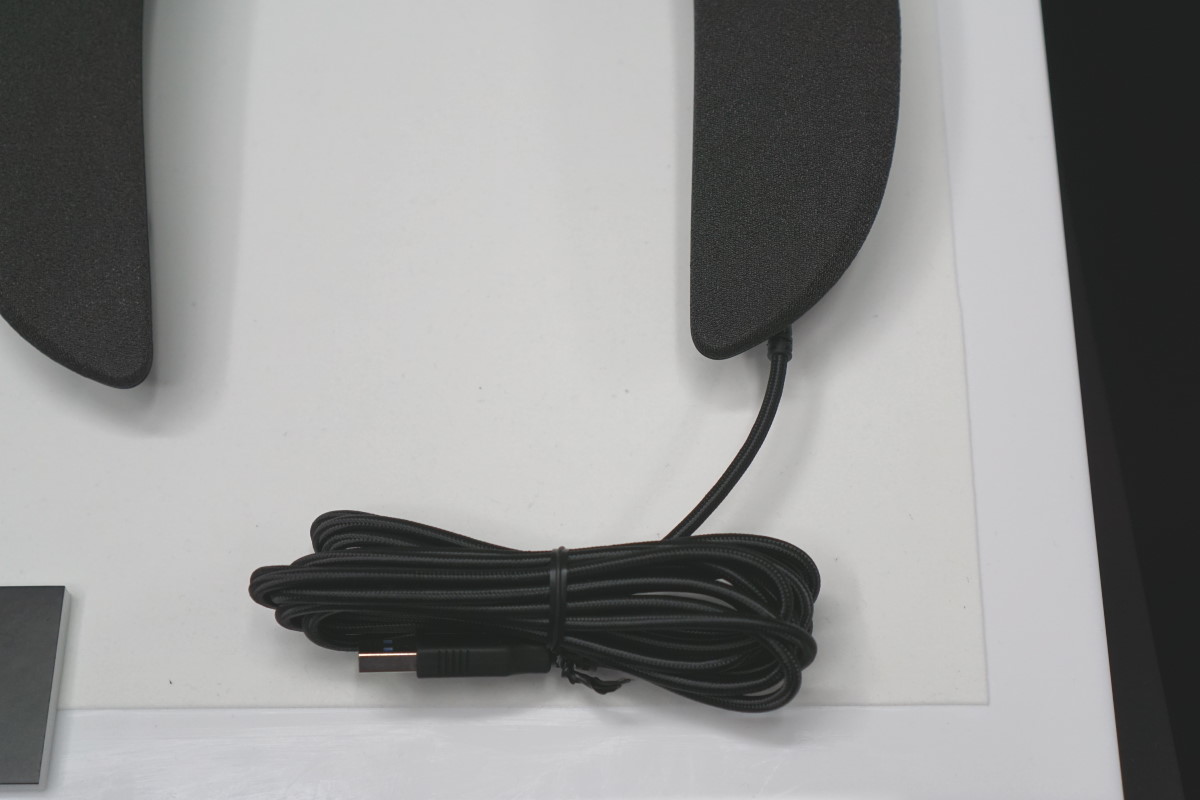 本体はシリコン製で見た目に反して柔軟性があり、肩に乗せていても疲れにくくなっています。また、USBから給電するためバッテリーを積んでおらず、その分軽くなっていることも軽快な装着感に貢献しているようです。ヘッドホンやイヤホンと違い耳を塞がないので、長時間のプレイで耳が疲れたり汗で湿ったりしないのもいいですね。