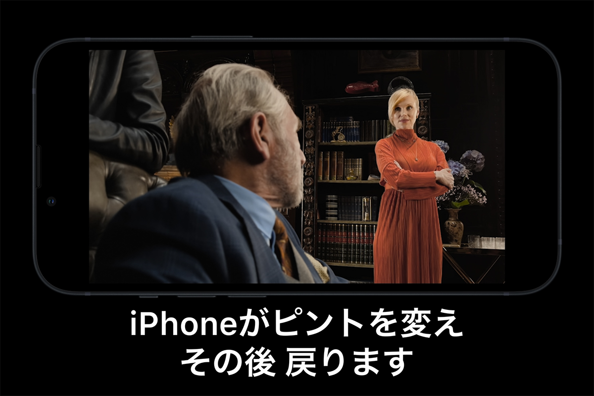 動画撮影も大きく進化し、「シネマティックモード」に対応した。フォーカスを合わせる人物をシーンごとにiPhone側で判断して、あたかも映画のワンシーンのように自動で切り替えることが可能。タップしてフォーカスを合わせたあと、編集でピントの合う場所を変える機能も用意されている。