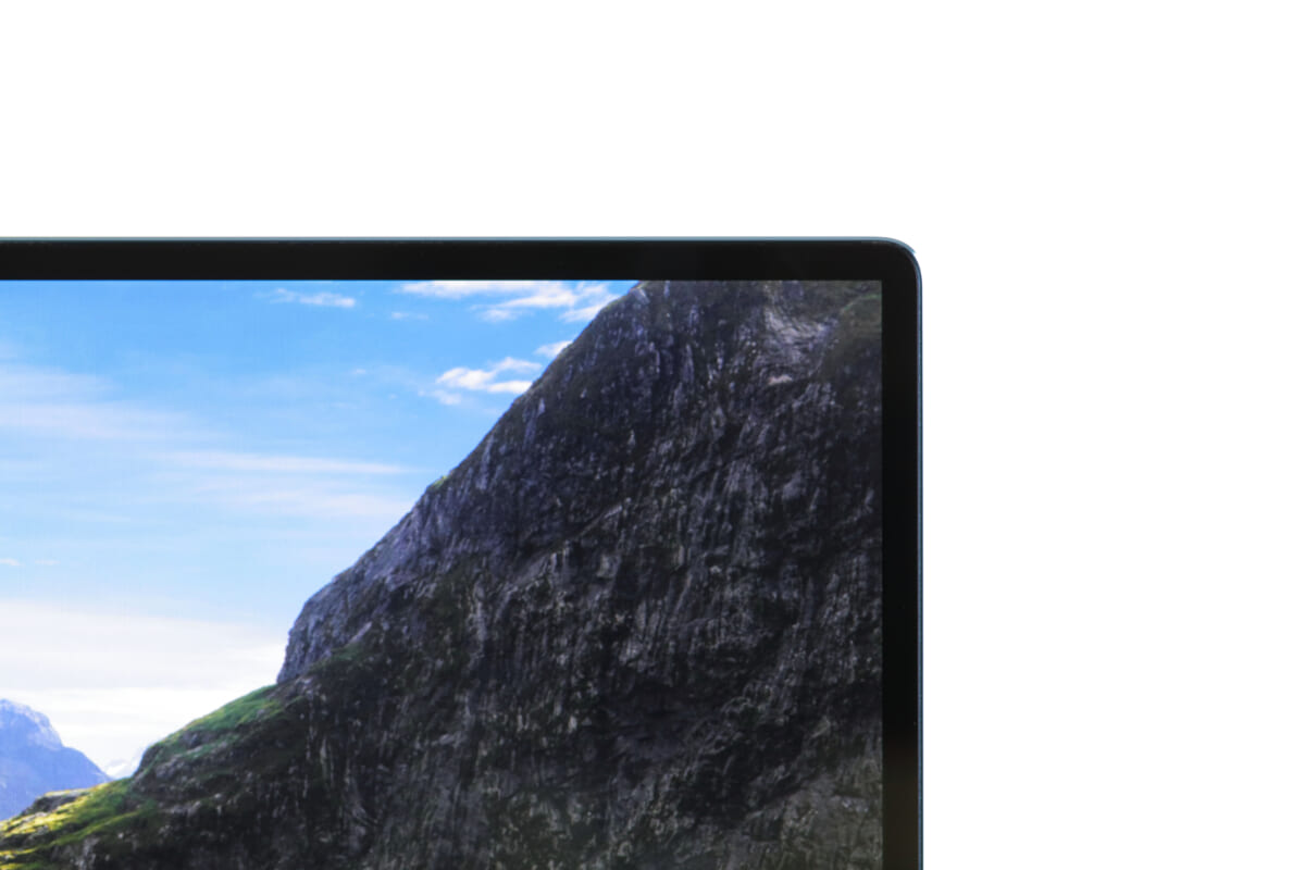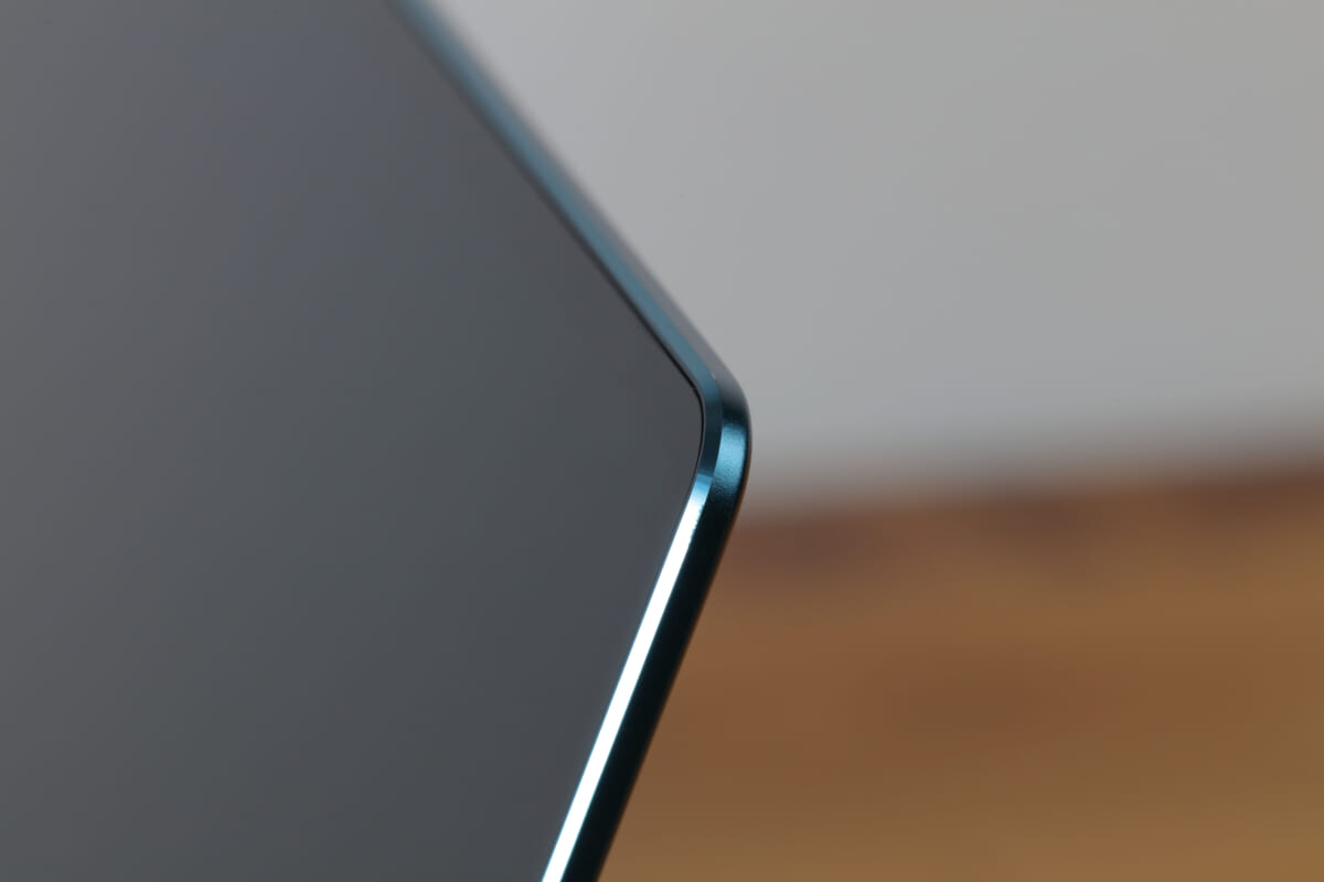 平置きしたサイズはA4のクリアファイルとほぼ同じかやや小さいくらい。13.9インチのディスプレイを搭載しながら、筆者が普段使っている13インチのノートパソコンと変わりないサイズです。このサイズを可能にしているのが、極薄のベゼル。ボディの画面占有率は約91%にもなるこの画面を眺めていると、スタイリッシュさすら感じます。