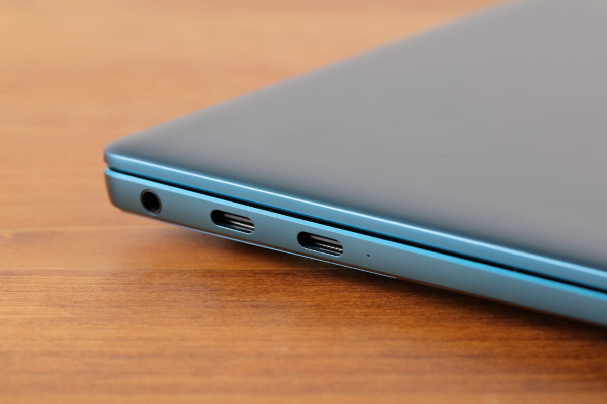 モバイルPCと言われるとこれまた気にかかるのが出力端子の数。それについても、本品はUSB-C2つ、ステレオミニプラグに加えて、小型の機種ではしばしば省かれがちなUSB-Aもしっかり搭載しているのが大きな評価ポイントです。