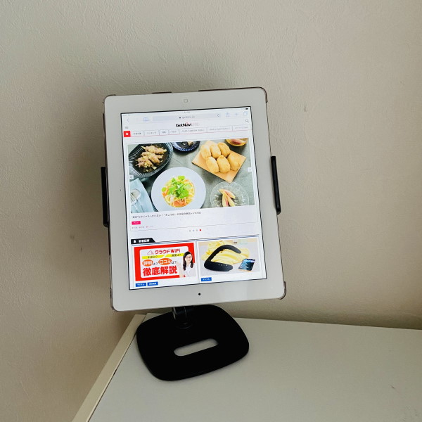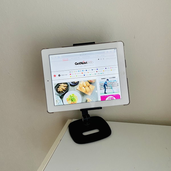 タブレットスタンドはプラスチック製のものだと筐体の重さで倒れてしまったり、画面にタッチするたびにグラグラと動いてしまったりと使いにくいものもありますが、こちらは金属製なので安定性が段違い! 本当に使いやすいのでタブレットを持っている人にはぜひ使ってほしいスタンドです。