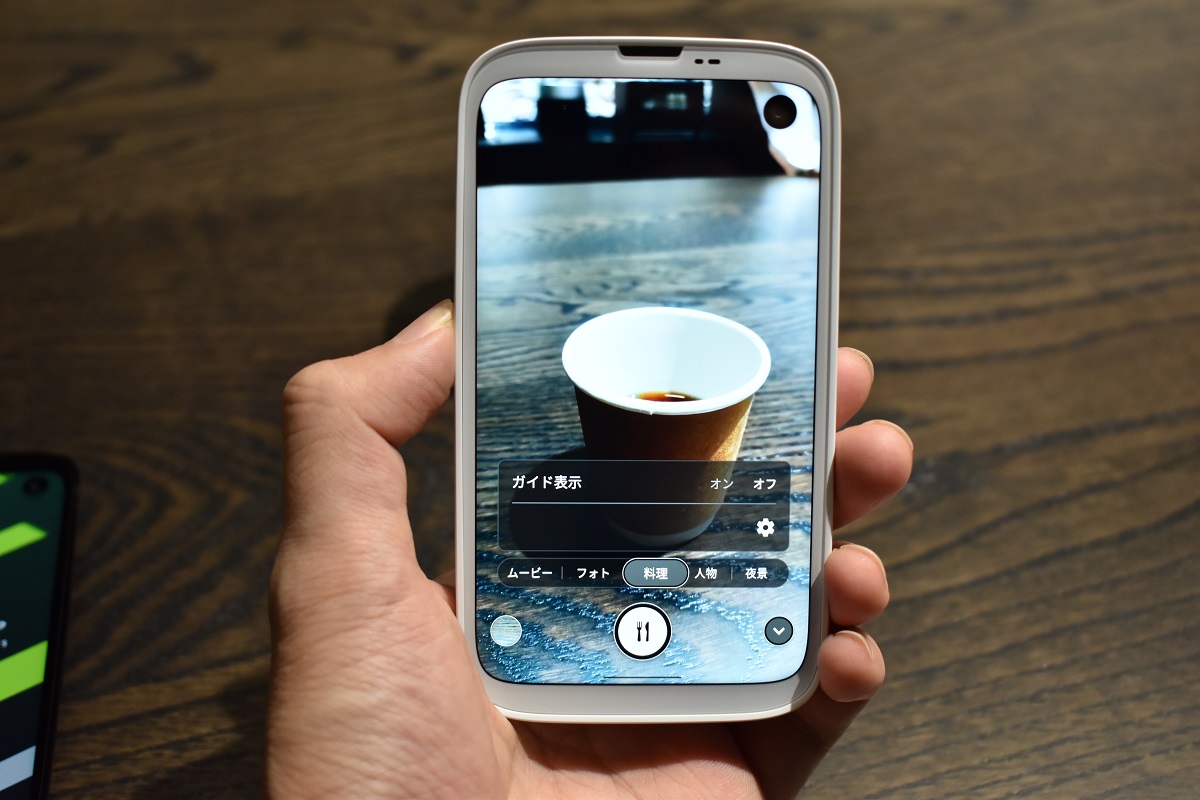 「カメラ」アプリは、「ムービー」「フォト」「料理」「人物」「夜景」の5つの撮影モードを用意。とりわけ料理モードは、バルミューダの料理撮影のノウハウをつぎ込んだと自負しています。夜景や料理モードで撮影してみると、シャッターボタンを押してから撮影終了まで数秒がかかり、その間にモードごとに最適な処理を施しているようでした。