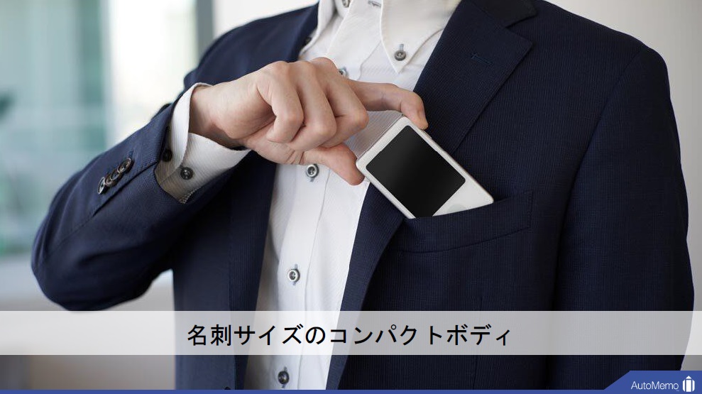 このオートメモに、液晶画面を備えた新モデル「オートメモS」が追加されます。オートメモSは、名刺サイズのコンパクトなボディに2.8インチの液晶画面を搭載。テキスト化した文字を表示することで、データをパソコンやスマートフォンなどに転送しなくても1台で管理できます。価格は税込2万4800円で、12月9日より予約受付を開始し2022年1月21日発売となります。液晶画面のない従来モデルの「オートメモ」(税込1万9800円)も併売されます。