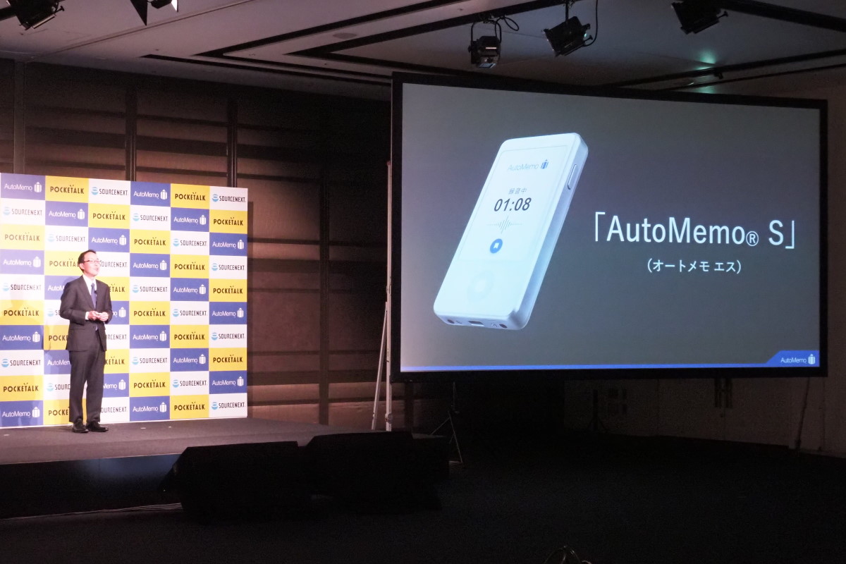 ソースネクストは、自動で文字起こしをしてくれるAIボイスレコーダーの新モデル「オートメモS」と、AI翻訳機「ポケトーク」のサブスクリプション型サービス「ポケトーク字幕」を発表しました。