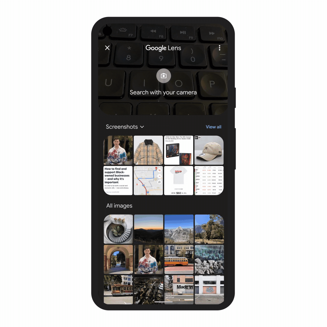 Search On ’21では、Google レンズでのデモンストレーションで、派手な柄のジャケットを写して「このジャケットと似た柄のスニーカー」という指定して検索するというデモンストレーションを披露しました。