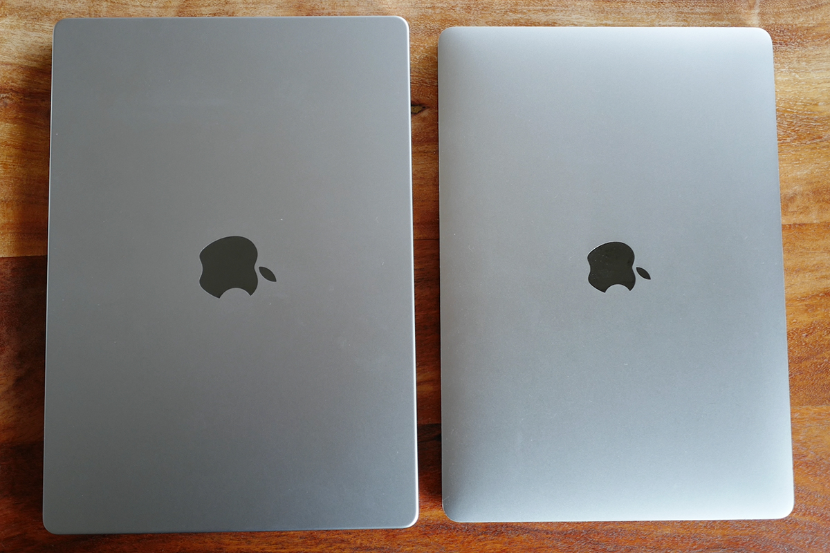 本体サイズは、2016年モデルが約幅30.41×奥行き21.24×高さ1.49cmで、2021年モデルが約幅31.26cm×奥行き22.12cm×高さ1.55cm。全体的に少し大きくなっていますが、1インチアップしたディスプレイを収めていることを考えると、それほど差がないことに驚くべきところでしょう。