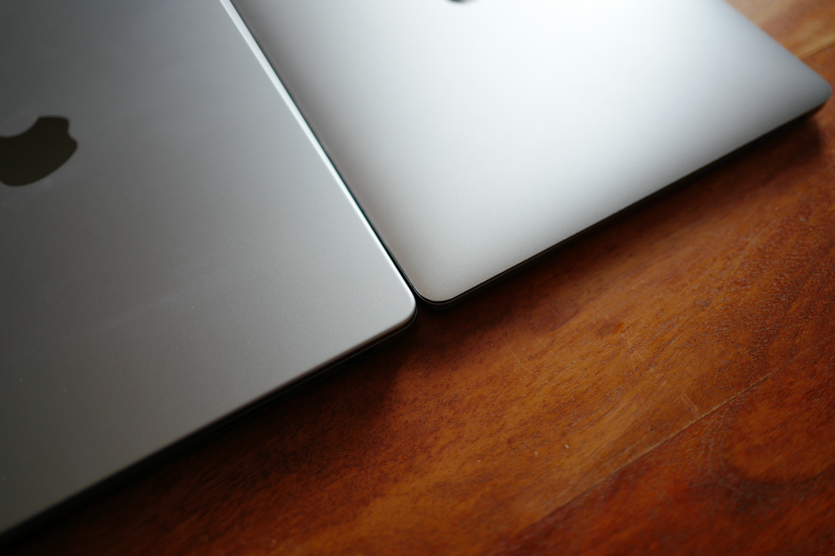 今回試用した2021年モデルのMacBook Proは、14インチ/Apple M1 Pro/16GBメモリーという構成。また、比較のために所有している2016年モデルのMacBook Pro(13インチ/Core i5 プロセッサー/8GBメモリー)を用意しました。