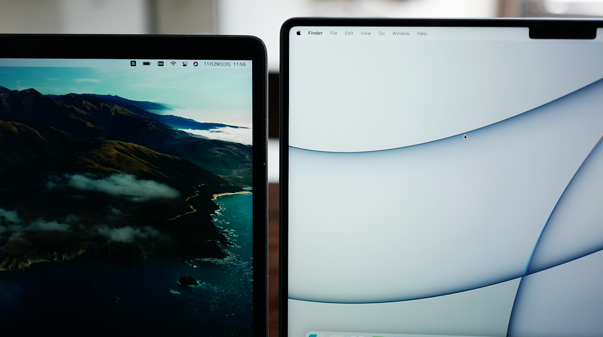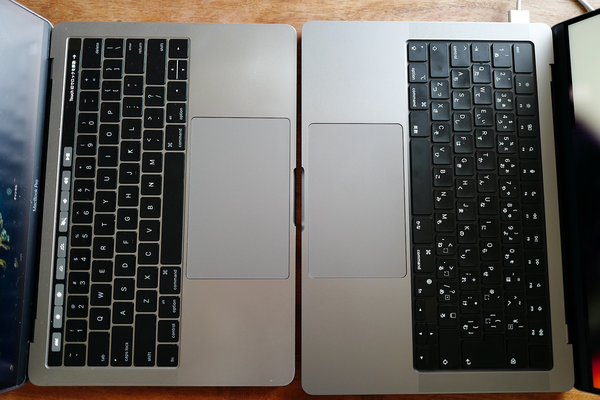 ディスプレイの解像度は、2016年モデルの13インチが2560×1600ドットで、2021年モデルの14インチが3024×1964ドットです。サイズが1インチアップしているうえに、縦横の表示領域が増えています。