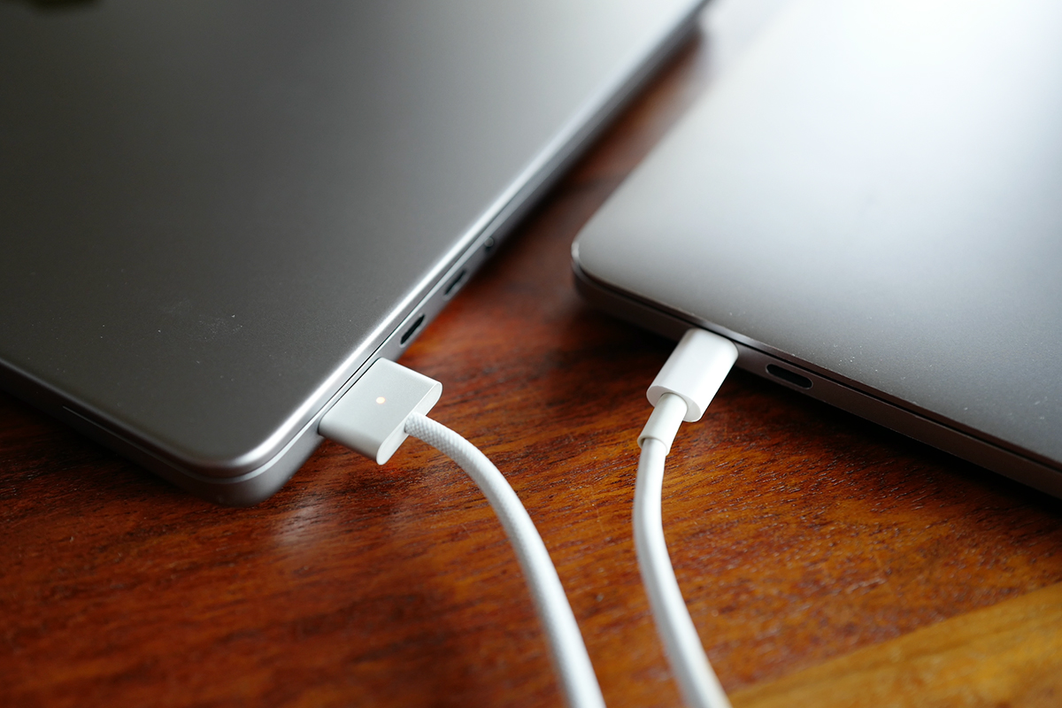 2016年モデルではUSB Type-C端子が充電端子を兼ねていたため、充電する際は、USBが1系統埋まってしまうという問題がありました。何かと接続する周辺機器が多い現代において、充電専用の端子がMagSafeで復活しているのは大きなメリットです。個人的には、足を引っ掛けても端子部分のみが外れ、本体が損傷しにくいという設計に安心感を持っており、こちらの復活も大歓迎です。