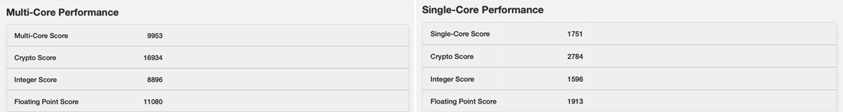 結果は、Core i5搭載の2016年モデルではマルチコアのスコアが1794、シングルコアのスコアが699でしたが、Apple M1 Pro搭載の2021年モデルはマルチコアのスコアが9953、シングルコアのスコアが1751でした。シングルコアの処理性能は、文字通り「桁違い」で、マルチコアの処理性能も大きく差が開いています。