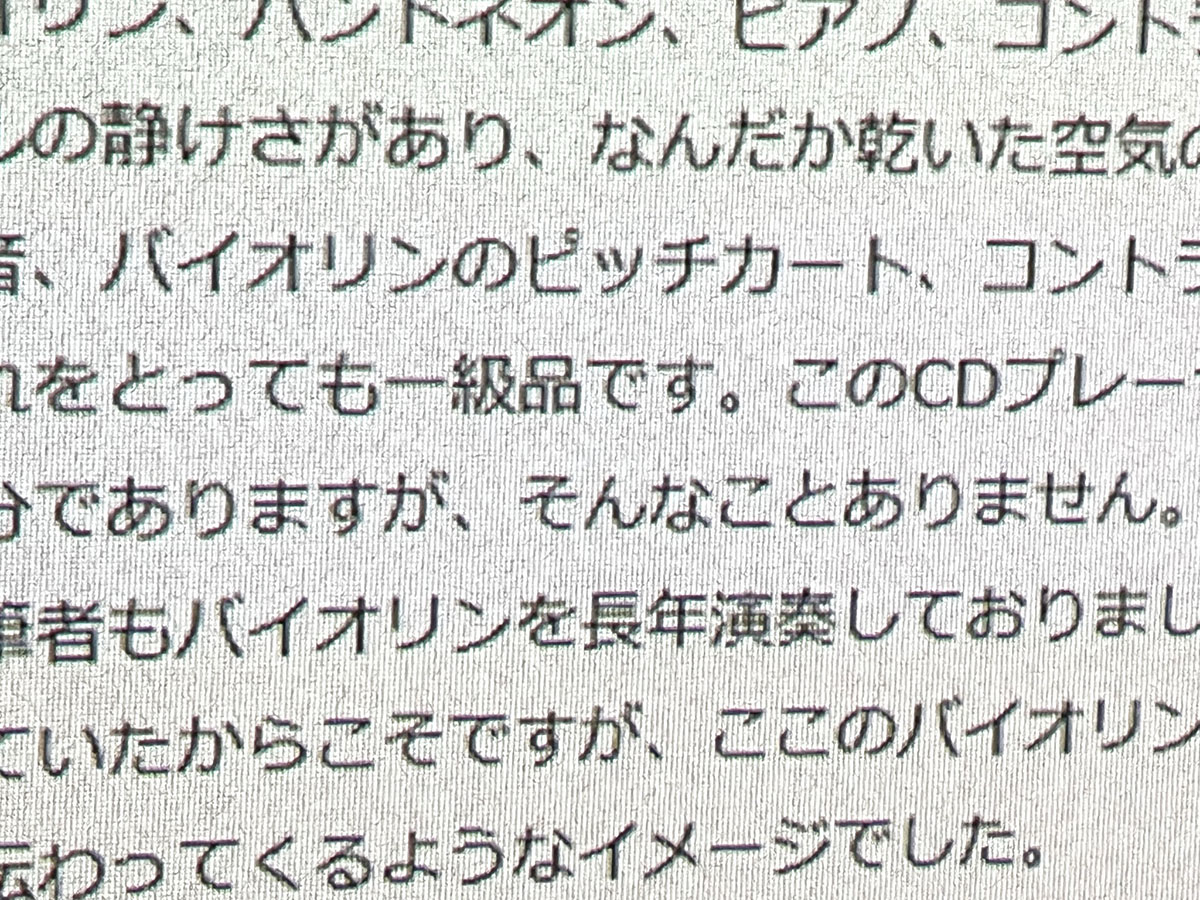 まずは天井に投写しながら画像と動画を見始めました。筆者の文章を画像化して投写したところ、文字の一つ一つがしっかりと認識でき、クッキリと表現。投写した天井の表面は凹凸があり、読みづらいのではと心配したのですが、高い解像度で文章が読めることには驚きました。