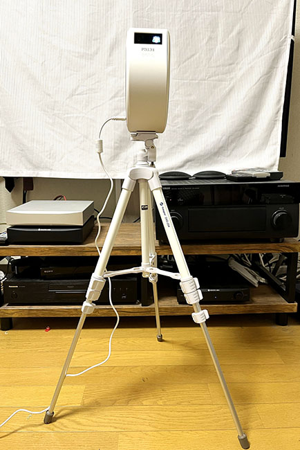 例えば座って視聴から寝っ転がって視聴に体勢を変えても、角度の調整は台座の上でスライドするだけと簡単で、フォーカスも台形補正も自動だからラクチンです。面倒な三脚の組み立てや手動のフォーカス設定で位置関係を調整する手間は必要ありません。初心者でも使いやすいでしょう。