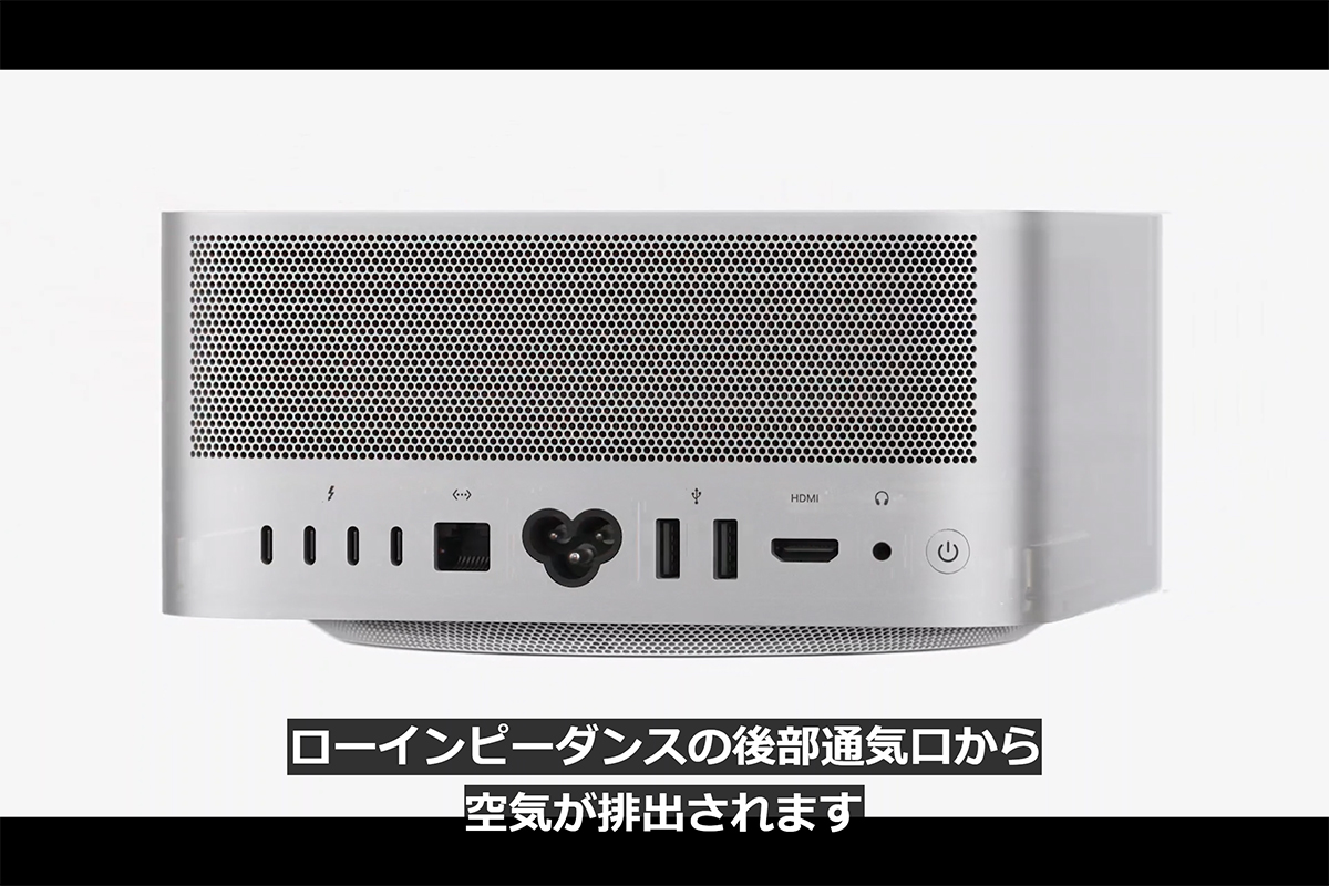インターフェイスは、M1 Max搭載モデルがUSB Type-C×2、SDXCカードスロット×1、Thunderbolt 4×4、USB Type-A×2、HDMI×1、10GB Ethernet端子×1、3.5mmヘッドフォンジャック×1を搭載。一方のM1 Ultra搭載モデルは、SDXCカードスロット×1、Thunderbolt 4×6、USB Type-A×2、HDMI×1、10GB Ethernet端子×1、3.5mmヘッドフォンジャック×1をそろえています。