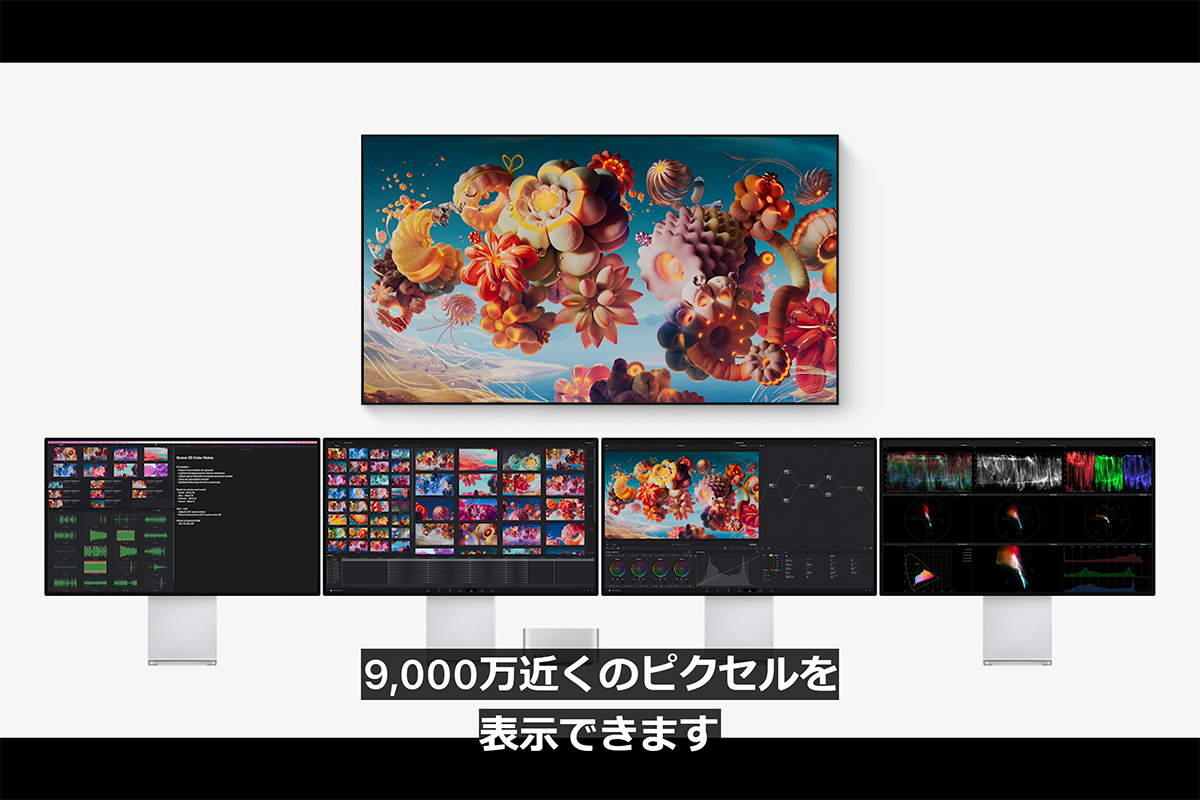 これにより、「複雑な粒子シミュレーション」や「巨大な3D環境のレンダリング」など、「かつてないほど負荷の高い作業」をパワフルにこなせるとアップルは説明しています。
