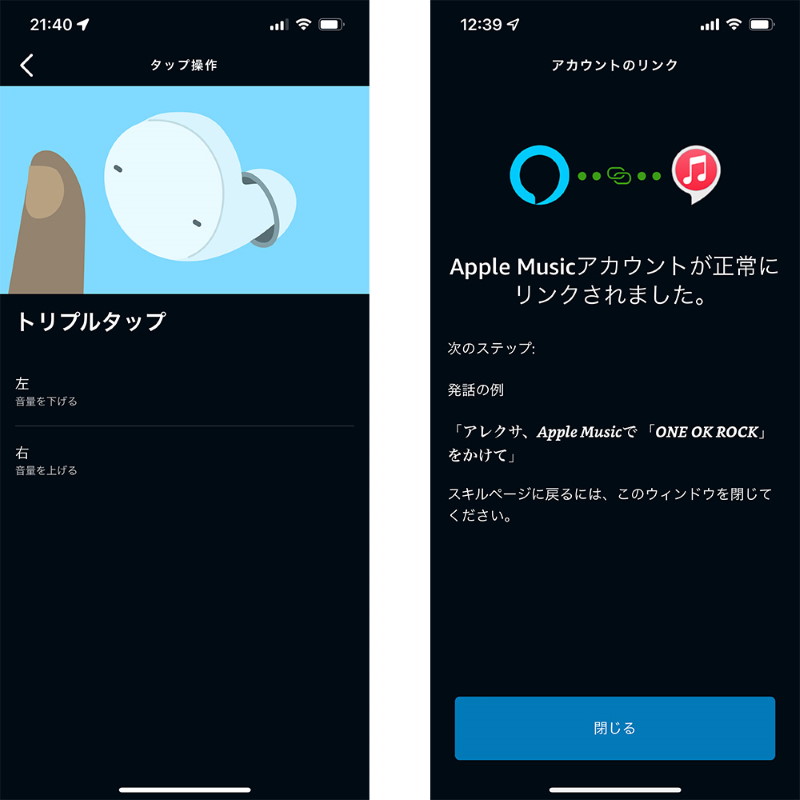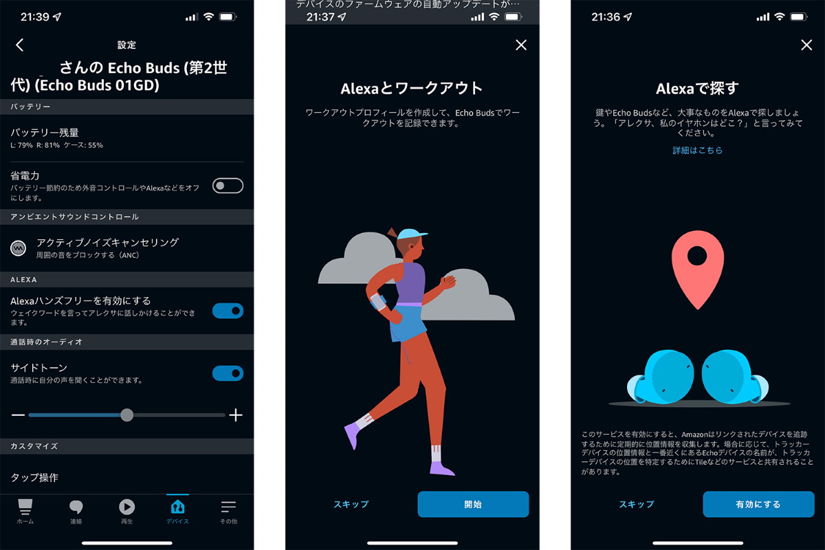 Alexaアプリから設定すると、イヤホンのリモコンを操作しなくてもハンズフリーの状態から「アレクサ」と発話してスムーズにコマンドを受け付けます。Alexaが起動したことを知らせるチャイムの音量がやや小さめなのが気になりましたが、いずれ改善されることを期待したいと思います。
