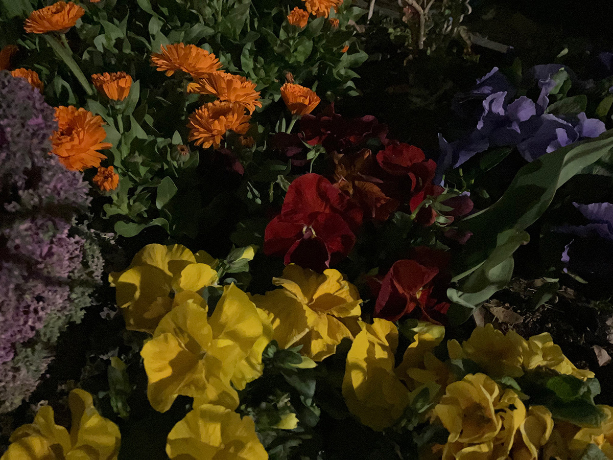 ↑夜間に花壇を撮影。暗めながらも花の色合いを残した写真に仕上がりました