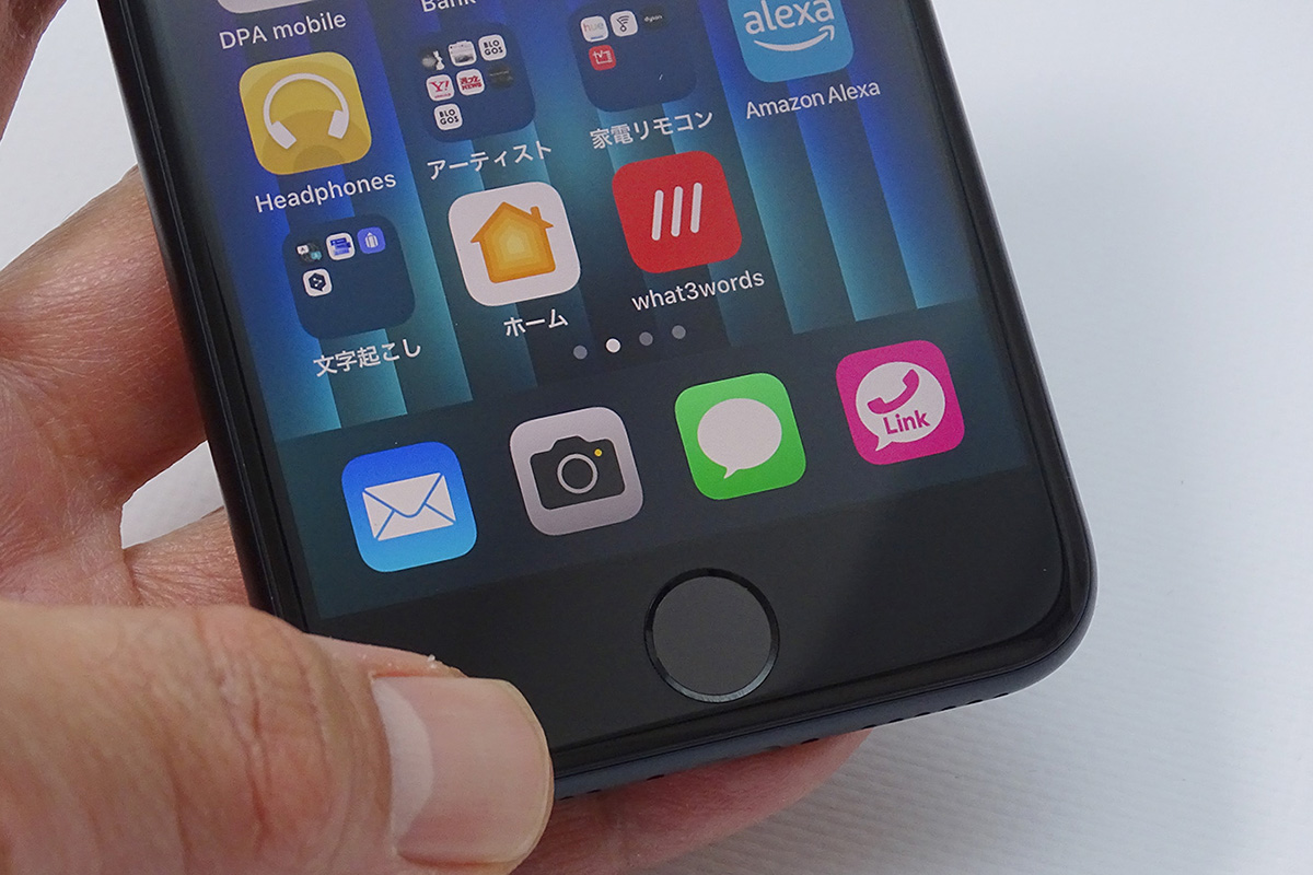 ↑Touch IDを内蔵するホームボタンを継承した第3世代のiPhone SE。マスクを装着したまま、画面ロックを簡単に解除できるメリットがあります
