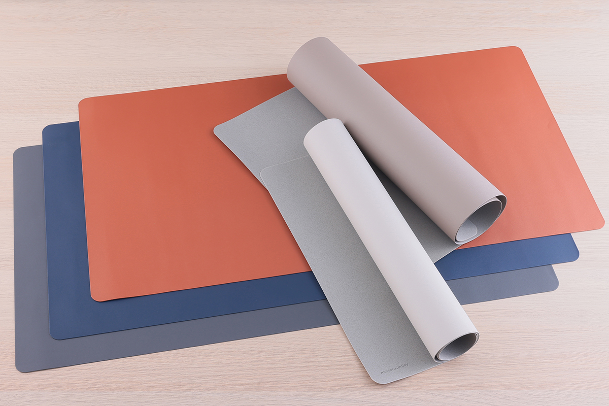 「敷いておくと、机の上にラフに物を置いても、大きな音が鳴りにくくなるんです。家族と家で過ごす時間が増えている中で、一緒に暮らす人への配慮としても、デスクマットはいいなと感じました。