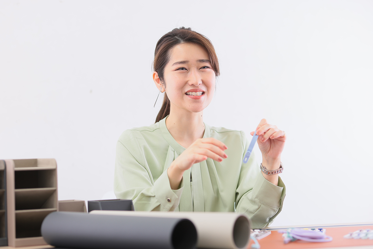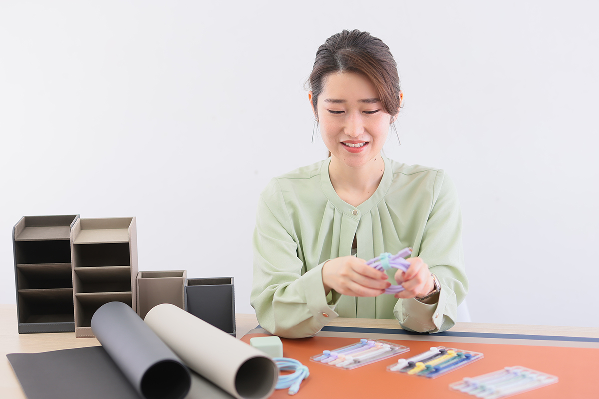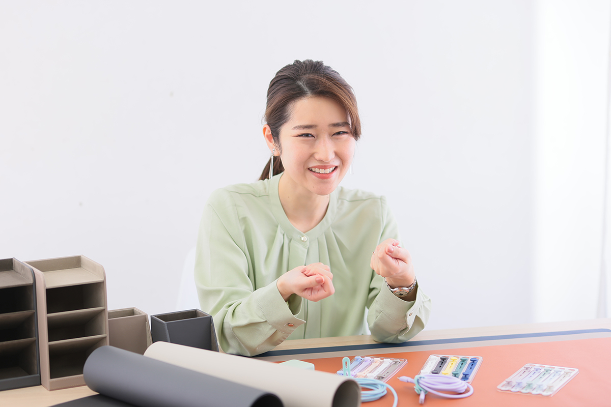 MOTTERUの卓上製品は、興味があれば買ってみようと思える価格帯に収まっています。さらに色味がかわいくて、買いやすいところが魅力です。実用品なのに、遊び心で色味も楽しめる。文房具もそうですが、役割を果たすだけなら、色は関係ありません。でも、手元に置いておくものが素敵な色味というだけで、見ていて楽しいし、使っていても楽しいものに変わるんです」