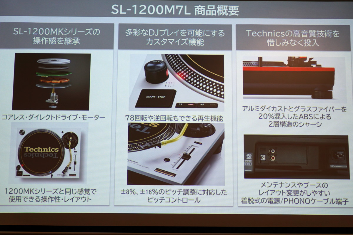 機能面では、SL-1200MKシリーズの操作感を継承しており、78回転や逆回転もできる再生機能、±8%、±16%のピッチ調整に対応したピッチコントローラーを備えています。