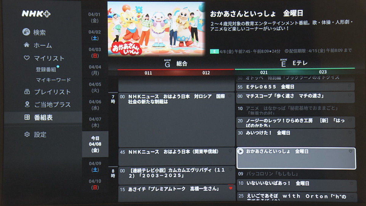 NHKは、PC・スマートフォン・タブレット向けに展開していたインターネット番組配信サービス「NHKプラス」について、2022年4月1日より一部のテレビや外付けデバイスなどでも視聴できるようになったほか、ほぼすべての番組が同時配信/見逃し配信に対応しました(※)。