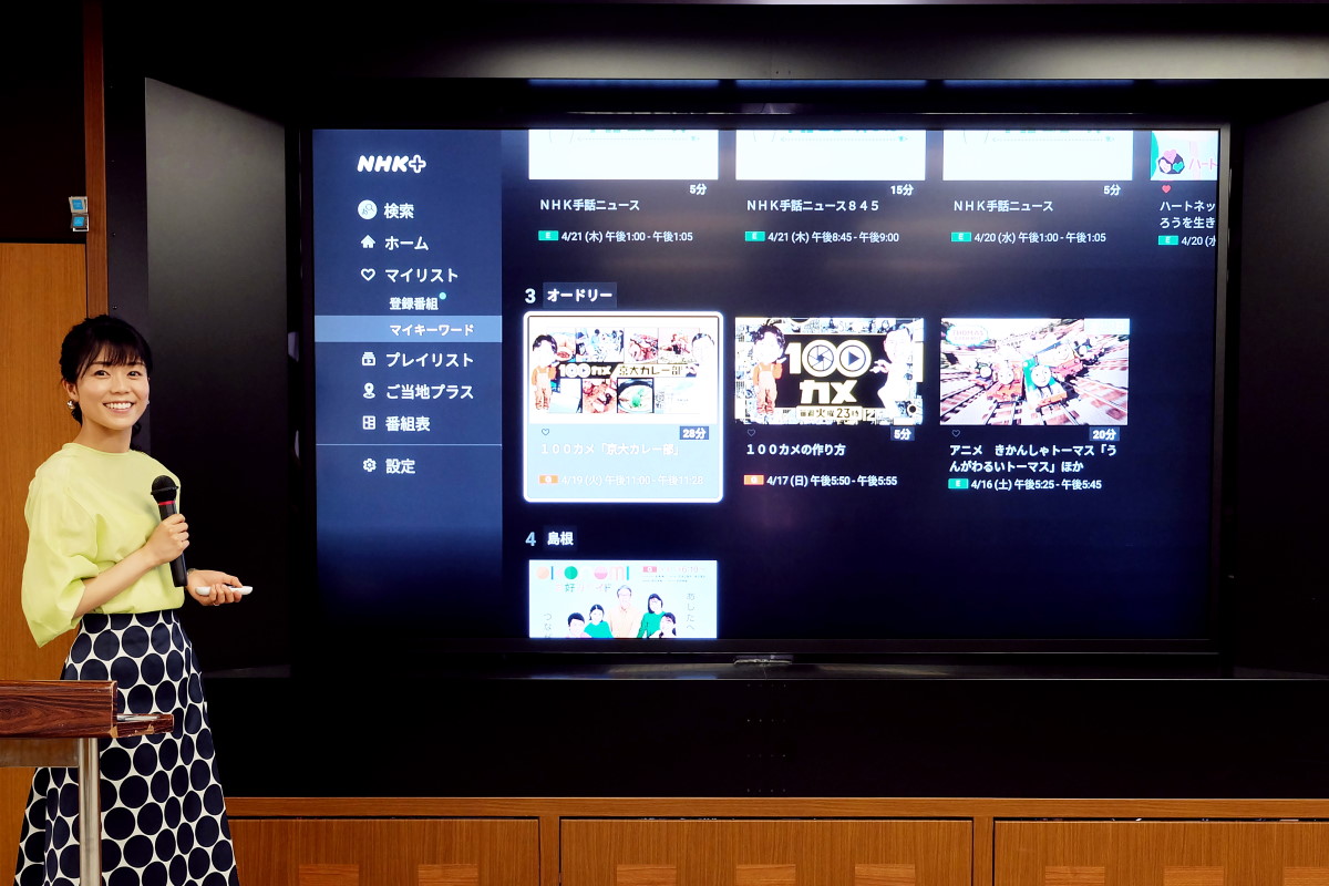 NHKプラスのサービス拡大にあたり、実機を使用した説明会がNHKで実施されました。機能の説明を担当したのは、同社の中山里奈アナウンサー。普段から同サービスを利用しているということで、おすすめの機能や番組などを紹介してくれました。