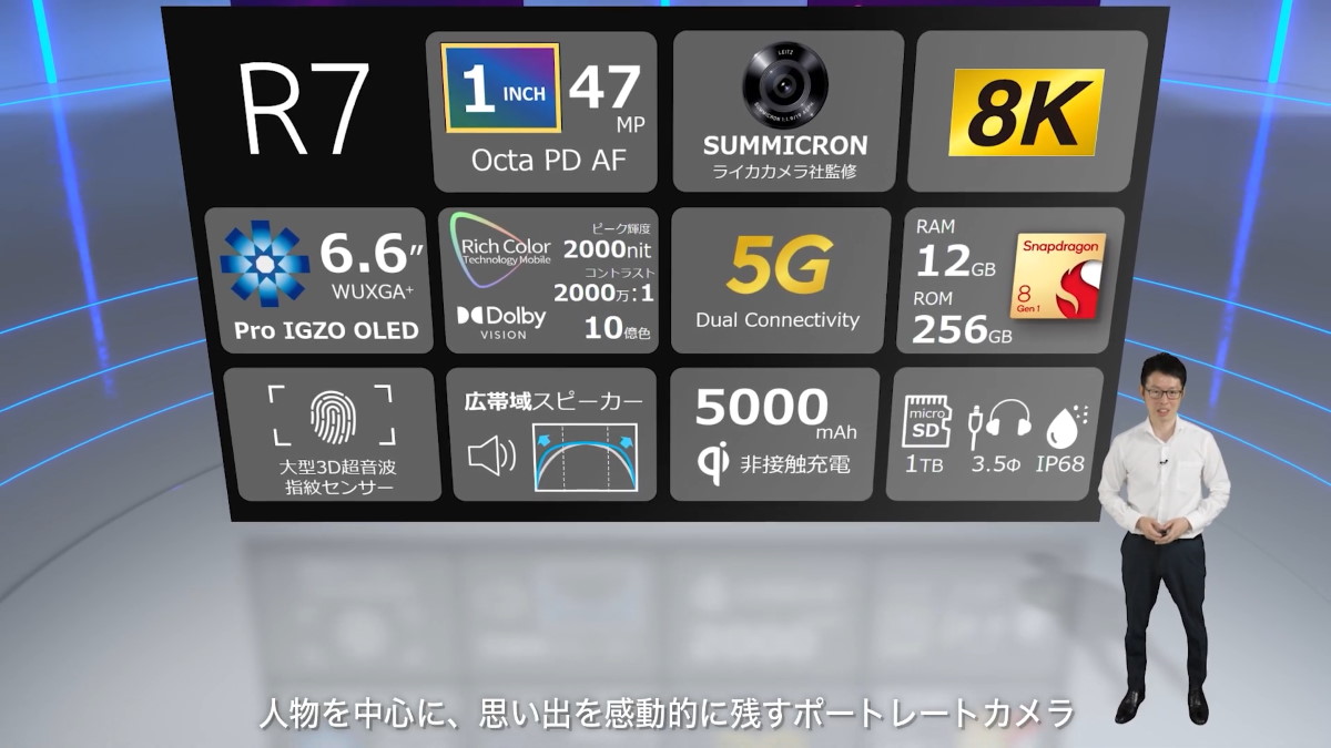 シャープはAndroidスマートフォンのフラッグシップモデル「AQUOS R7」を発表しました。NTTドコモとソフトバンクの2キャリアから7月以降に発売されます。