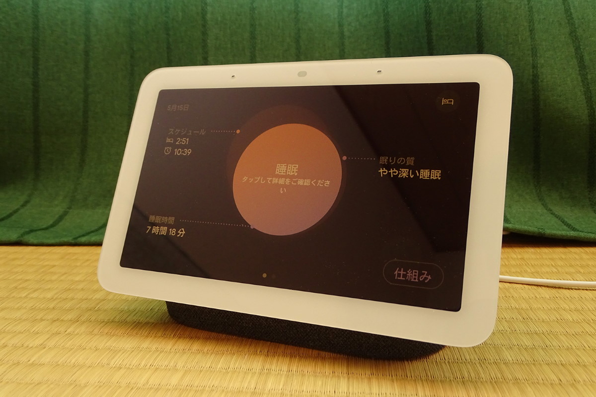 睡眠モニター機能はユーザーが眠っている時間だけでなく、睡眠の深さなど「質」も判定できるところが優れています。そして何より、ユーザーが睡眠トラッキングのため特別なデバイスを身に着ける必要がないので、蒸し暑い日本の夏を迎えても心地よく睡眠トラッキングができます。スマートディスプレイをベッドサイドに設置して、いつものようにただ眠るだけです。