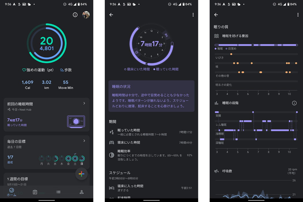 Google Nest Hubは常にアダプターによる給電が必要なデバイスなので、基本的には1箇所に固定して使います。ただ、睡眠データの履歴はユーザーのGoogleアカウントにひもづいたスマホからいつでも見ることができます。