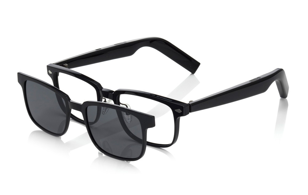 コラボモデルでは、専用のアクセサリー「SNAP LENS」(別売・税込1500円)も用意。メガネの上からマグネットで取り付ければ、一瞬にしてサングラスに早変わりします。例えばクルマの運転のときだけサングラスにするといった使い方も手軽にできます。