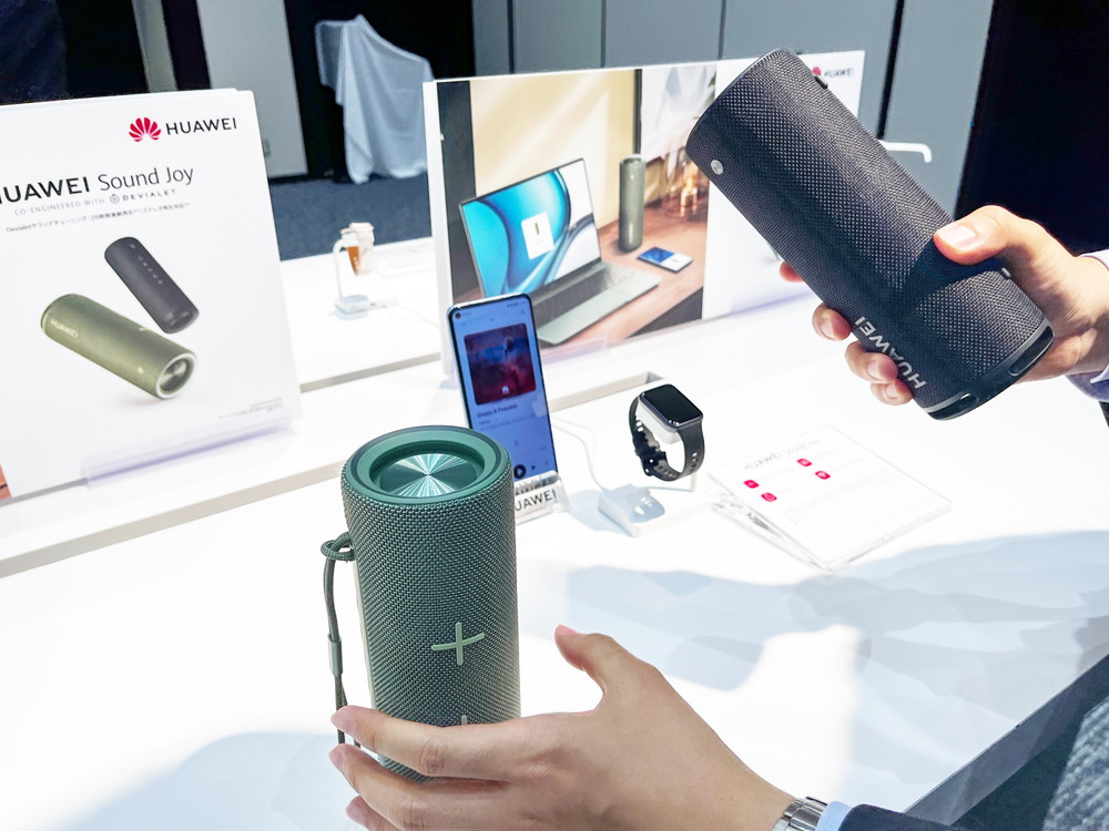 オーディオ関連の製品としては、Bluetoothスピーカー「HUAWEI Sound Joy」も発表されました。フランスのオーディオメーカーDevialet(デビアレ)の音響監修を受けた製品で、360度全方位に鳴り響く筒型スピーカーです。価格は1万4800円(税込)で、本日5月26日の発売です。