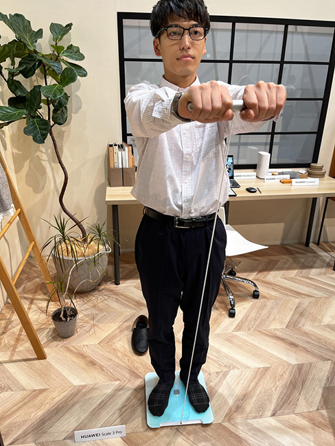 スマート体組成計のHUAWEI Scale 3 Proは、6月9日発売で価格は1万780円(税込)。足と手の両方を使って全身のデータを測定します。測定結果は体重、BMIや骨格筋量、体内水分率、基礎代謝量、心拍数などの10項目以上に対応。乗った人を自動識別する機能も備えており、家族で共有しやすいようになっています。