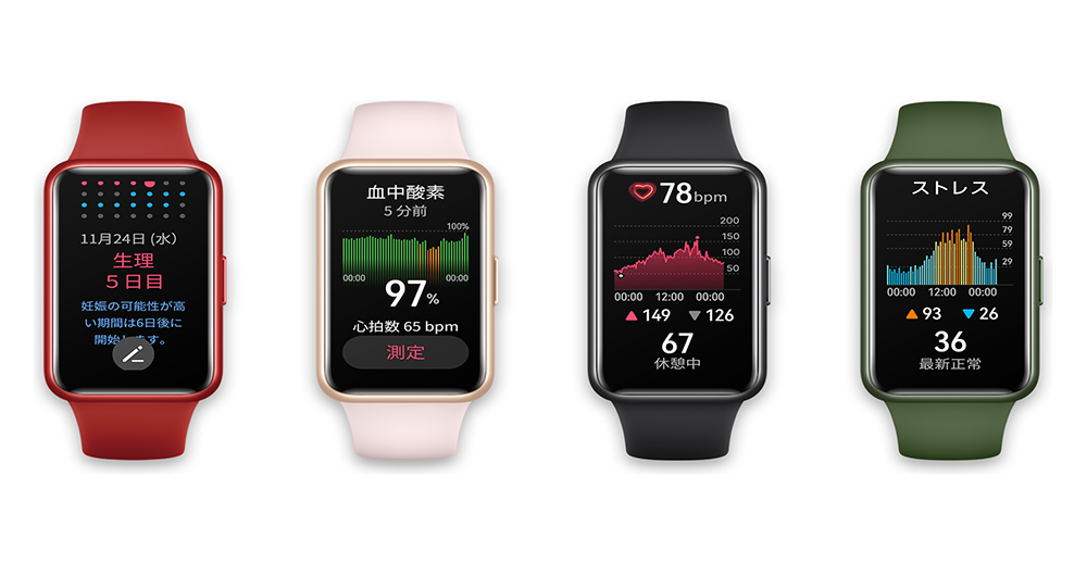 スマートウォッチのHUAWEI WATCH FIT 2はシリコンバンドタイプが2万680円(税込)、レザーバンドタイプが2万3980円(税込)。計5色展開となっています。