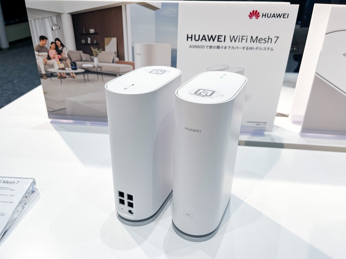 Wi-Fiルーターは、メッシュWi-Fi対応の高機能タイプ「HUAWEI WiFi Mesh 7」が発表されました。1ユニットモデルが2万2880円(税込)で、2ユニットモデルは4万4880円(税込)。6月9日発売です。