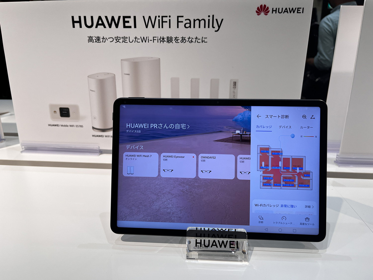 メッシュWi-Fiは建物の各所に置いたWi-Fiルーターが連動して、建物全体をWi-Fiで満たすというシステムです。HUAWEI WiFi Mesh 7は最新規格のWi-Fi 6に加えて、ファーウェイ独自規格のWi-Fi 6 Plusをサポート。ファーウェイ製のモバイル機器で高速な通信が可能としています。発売済みの小型モデル「HUAWEI WiFi Mesh 3」など、ファーウェイのメッシュWi-Fiルーターと組み合わせても利用できます。