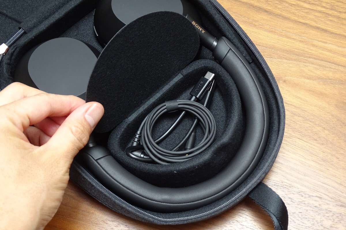 筆者がWH-1000XM5のデザインについて一点馴染めないのは、従来機種まで採用されてきたスイーベル+折りたたみ構造が省かれてしまったことです。専用ケースにコンパクトに収納できることもマーク4までの魅力でしたが、マーク5が変形できるのはフラットな形状までです。ケースも頑張って薄型化しているのですが、縦横サイズが大きくなっているのでバッグの中の空きスペースを結構占めてしまいます。手荷物をコンパクトにしたい空の旅には、新機種の発売後も引き続き併売されるマーク4の方が向いているかもしれません。