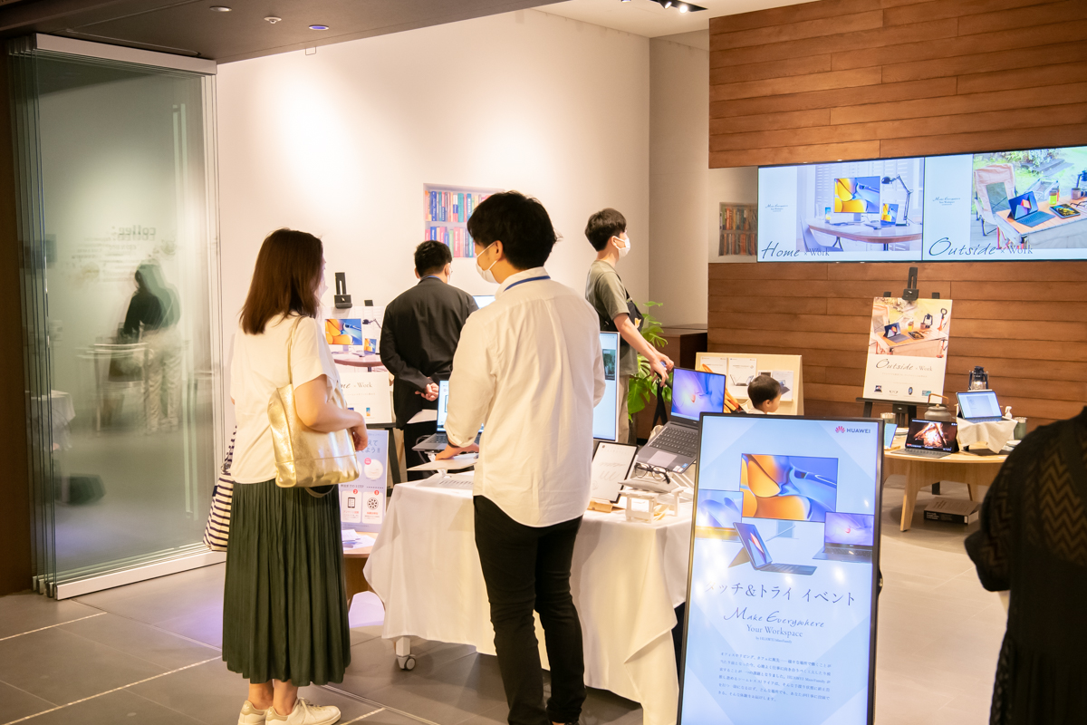 5月28日(土)には、二子玉川 蔦屋家電でGetNavi web制作による、HUAWEI MateFamilyのタッチ&トライイベントを開催。「あらゆる場所をあなたのワークスペースに」をテーマに、いくつかの暮らしのシーンの中で、HUAWEI MateFamilyを活用する方法を提案し、来場したユーザーにデバイスを体験してもらいました。