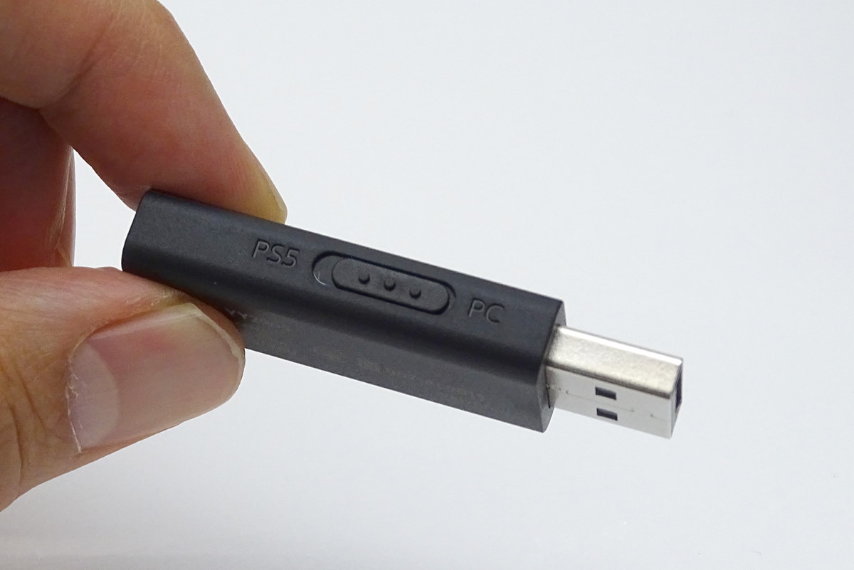 ワイヤレスモデルは2.4GHz帯のデジタル無線対応。専用のドングルをPC、またはPlayStationに接続して使います。INZONE H3は3.5mmステレオミニプラグと、USB接続に変換できるアダプターが付属します。