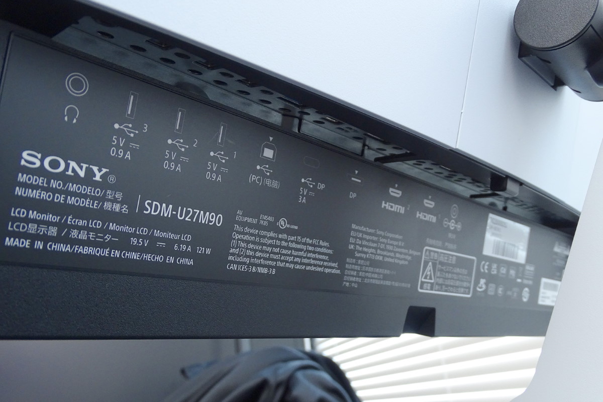 HDMI2.1端子は2基、USBもType-C/B/Aの各種を揃えています。複数のPCをINZONEのモニターにつないで、1組のキーボードとマウスで操作できるように「オートKVMスイッチ」の機能も搭載しました。この機能を利用するためにはモニターとPCとの間をUSB-C/USB-Bでつなぐ必要があります。モニターにはステレオスピーカーを内蔵していますが、夜間のゲーミングも気兼ねなく楽しめるようにヘッドホン出力も付いています。