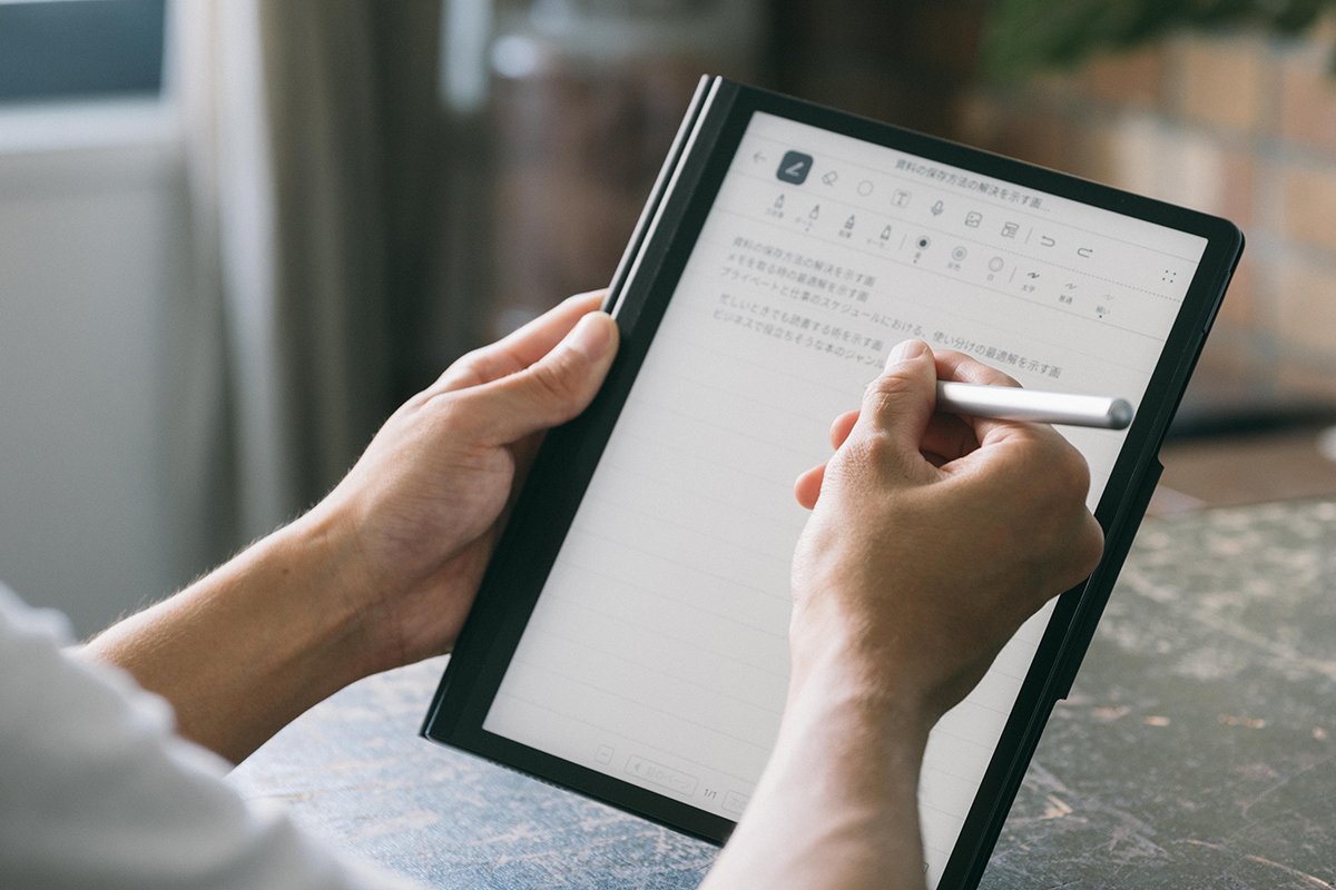 「たとえば電子ペーパーデバイスなら、手書きをしながら、情報を整理していくような使い方にぴったり。テキストを入力して完結する作業ならPCで十分ですが、単なる情報の羅列ではなく、情報と情報の相関関係を手早くわかりやすくまとめるには、手書きの方が適していますよね」