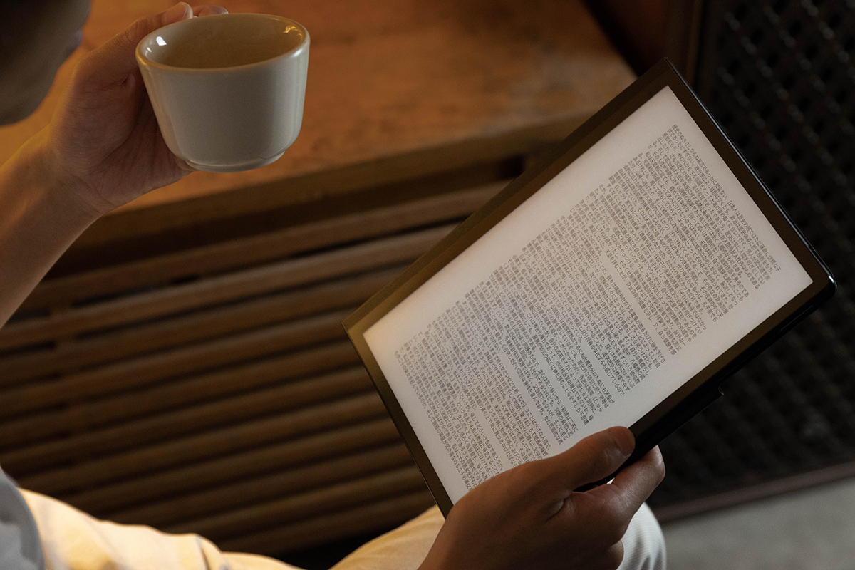 ビジネスにおける情報のインプットで、大きな役割を持つ読書。私はこれまで、「読書は必ず紙」と決めていました。理由は主に手触りの良さや、カバンに気軽に放り込んでも故障の心配がない扱いやすさからです。しかし、HUAWEI MatePad Paperを持ったからには電子書籍も気になります。そこで緒方さんに聞いてみると、「ビジネスのインプットとして読書をするなら、絶対に電子書籍がいい」と話してくれました。